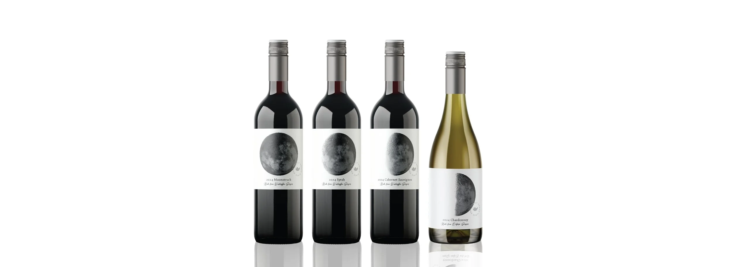 Moon Series wines are made from grapes sourced outside of British Columbia. The series is limited to 2024, a year of devastating crop losses in our province that had us source grapes a little further afield than we normally do. You'll try a Chardonnay made from grapes grown in Ontario, and three reds made from Washington grapes: Cabernet Sauvignon, Syrah and Moonstruck. Sign up to explore these once-in-a-blue-moon wines while you can!